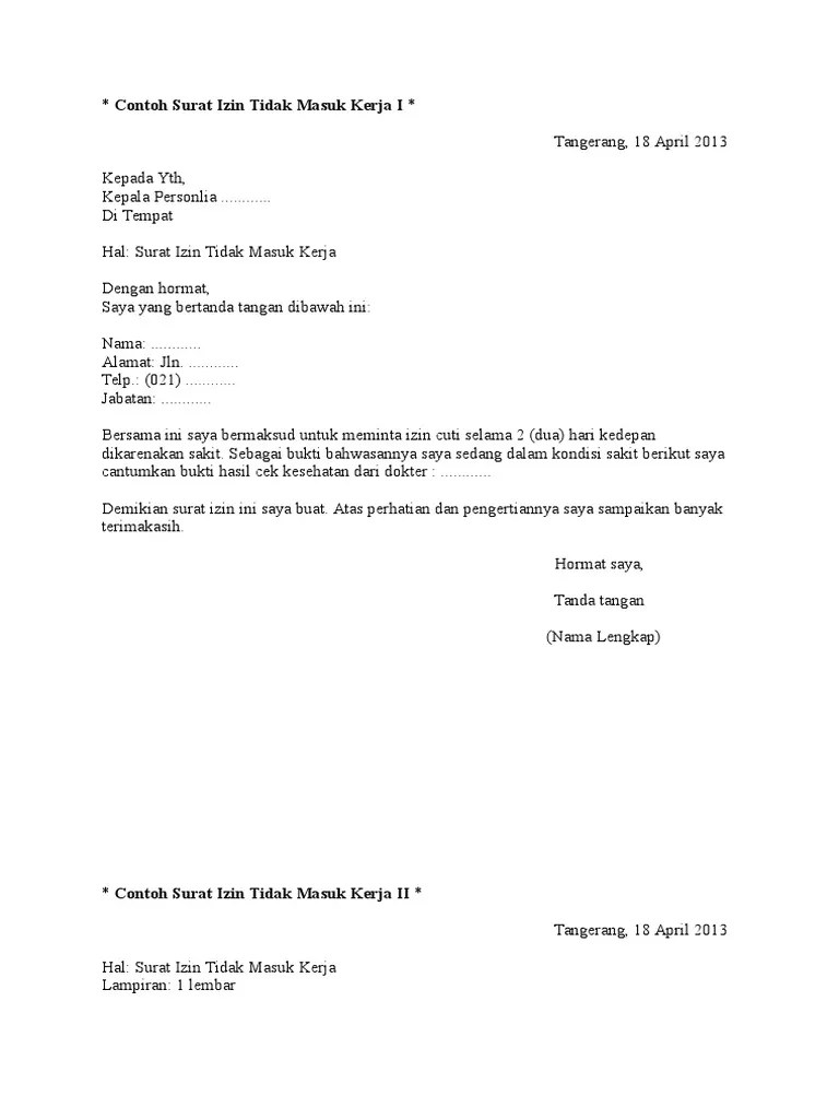Contoh Surat Izin Pekerjaan - Surat Izin Tidak Masuk Kerja I Pdf : contoh surat permohonan izin mulai kerja proyek.