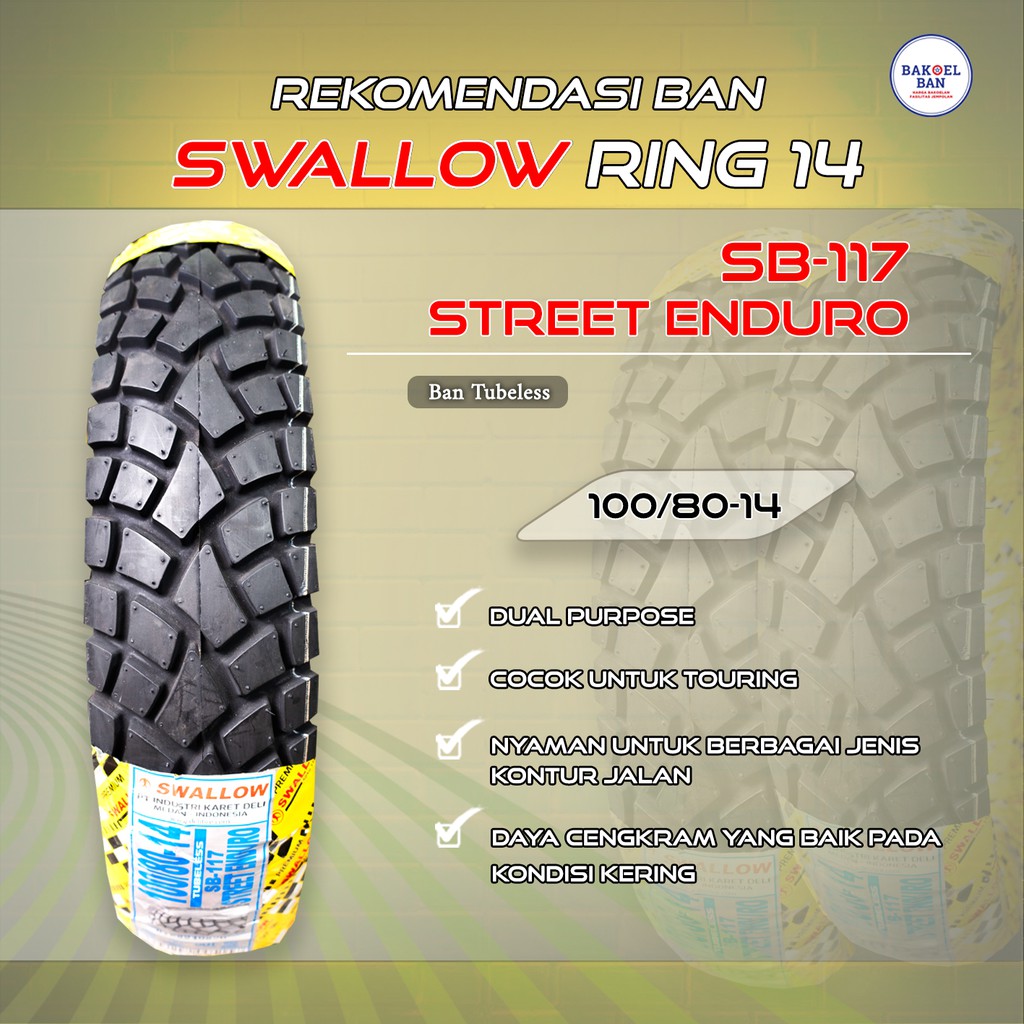 Sedangkan untuk angka 14 adalah ukuran dari velg nya. Ban swallow 100 80 14 sb 117 street enduro tubeles velg ring 14. Harga ban swallow street enduro ring 14 di pasaran biasanya dijual dengan harga 150 ribu. Selain mengetahui ukuran ban, hal selanjutnya yang perlu diperhatikan guna menjaga . Ban motor swallow ring 14 street enduro tubetype bukan tubles semi tril ukuran .